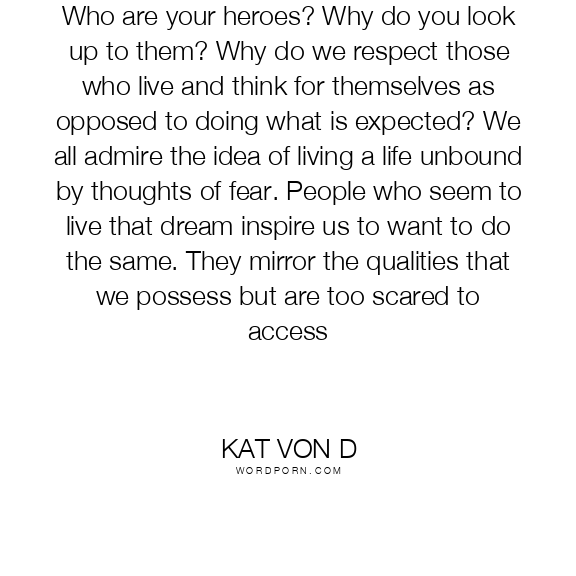 Who are your heroes? Why do you look up to them? Why do we respect those who live and think for themselves as opposed to doing what is expected? We all admire the idea of living a life unbound by thoughts of fear. People who seem to live that dream inspire us to want to do the same. They mirror the qualities that we possess but are too scared to access