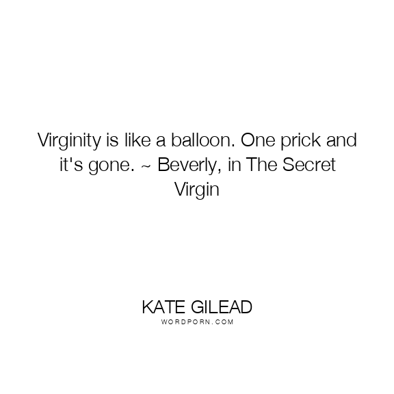 Copy Image Virginity is like a balloon. One prick and it's gone. ~ Beverly, in The Secret Virgin Moms Typewriter A A SAVE THIS IMAGE