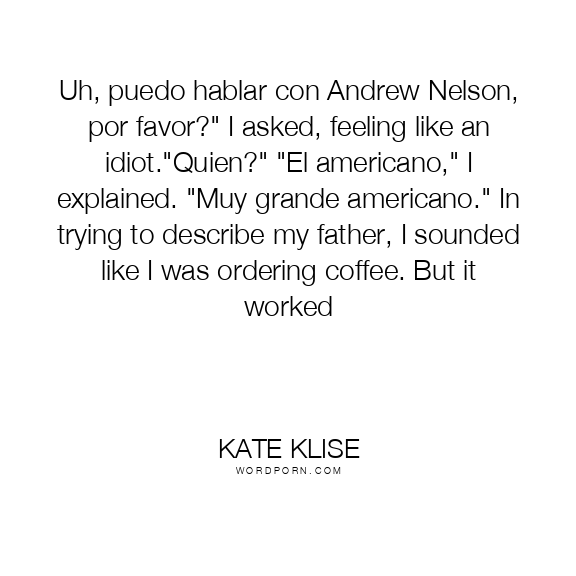 Uh, puedo hablar con Andrew Nelson, por favor?" I asked, feeling like an idiot."Quien?" "El americano," I explained. "Muy grande americano." In trying to describe my father, I sounded like I was ordering coffee. But it worked