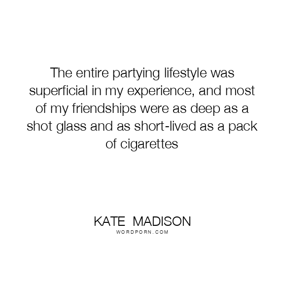 The entire partying lifestyle was superficial in my experience, and most of my friendships were as deep as a shot glass and as short-lived as a pack of cigarettes
