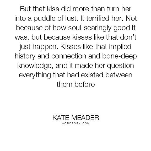 But that kiss did more than turn her into a puddle of lust. It terrified her. Not because of how soul-searingly good it was, but because kisses like that don’t just happen. Kisses like that implied history and connection and bone-deep knowledge, and it made her question everything that had existed between them before