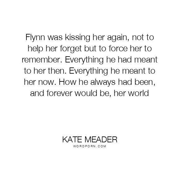 Flynn was kissing her again, not to help her forget but to force her to remember. Everything he had meant to her then. Everything he meant to her now. How he always had been, and forever would be, her world