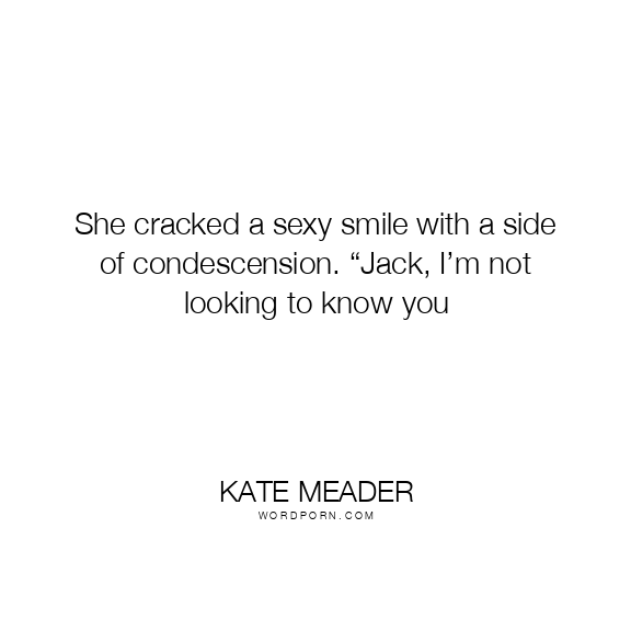 She cracked a sexy smile with a side of condescension. “Jack, I’m not looking to know you