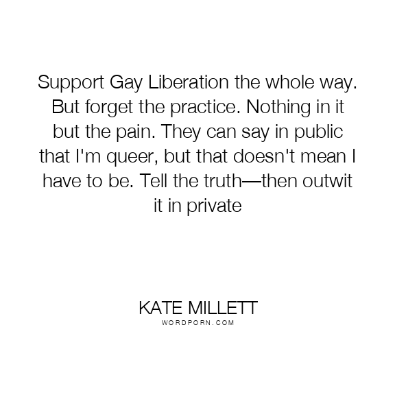 Support Gay Liberation the whole way. But forget the practice. Nothing in it but the pain. They can say in public that I'm queer, but that doesn't mean I have to be. Tell the truth––then outwit it in private