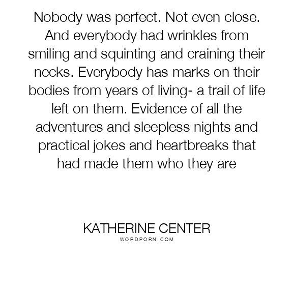 Nobody was perfect. Not even close. And everybody had wrinkles from smiling and squinting and craining their necks. Everybody has marks on their bodies from years of living- a trail of life left on them. Evidence of all the adventures and sleepless nights and practical jokes and heartbreaks that had made them who they are