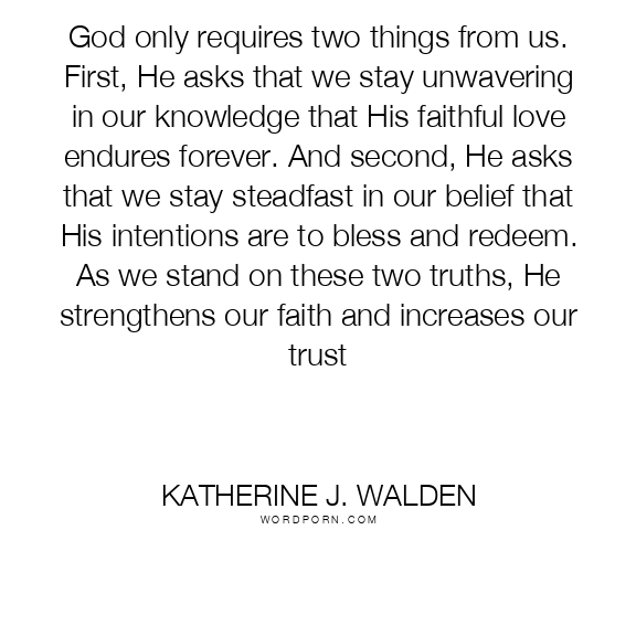 God only requires two things from us. First, He asks that we stay unwavering in our knowledge that His faithful love endures forever. And second, He asks that we stay steadfast in our belief that His intentions are to bless and redeem. As we stand on these two truths, He strengthens our faith and increases our trust
