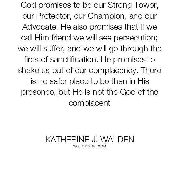God promises to be our Strong Tower, our Protector, our Champion, and our Advocate. He also promises that if we call Him friend we will see persecution; we will suffer, and we will go through the fires of sanctification. He promises to shake us out of our complacency. There is no safer place to be than in His presence, but He is not the God of the complacent