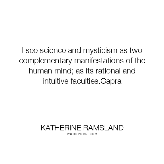 I see science and mysticism as two complementary manifestations of the human mind; as its rational and intuitive faculties.Capra
