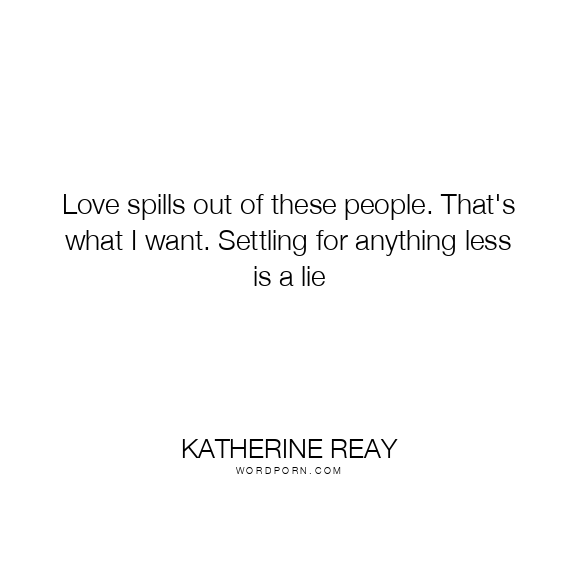 Love spills out of these people. That's what I want. Settling for anything less is a lie