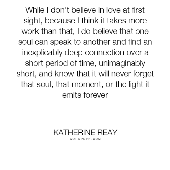 While I don't believe in love at first sight, because I think it takes more work than that, I do believe that one soul can speak to another and find an inexplicably deep connection over a short period of time, unimaginably short, and know that it will never forget that soul, that moment, or the light it emits forever