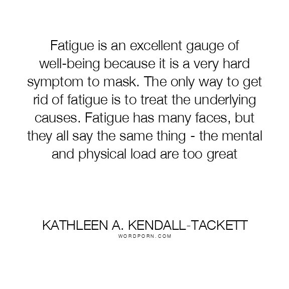 Fatigue is an excellent gauge of well-being because it is a very hard symptom to mask. The only way to get rid of fatigue is to treat the underlying causes. Fatigue has many faces, but they all say the same thing - the mental and physical load are too great