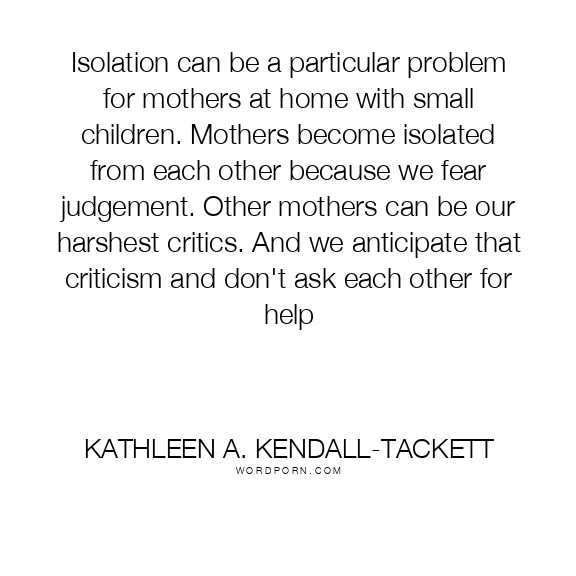Isolation can be a particular problem for mothers at home with small children. Mothers become isolated from each other because we fear judgement. Other mothers can be our harshest critics. And we anticipate that criticism and don't ask each other for help