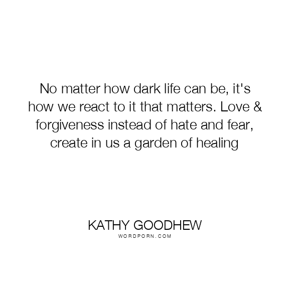 No matter how dark life can be, it's how we react to it that matters. Love & forgiveness instead of hate and fear, create in us a garden of healing