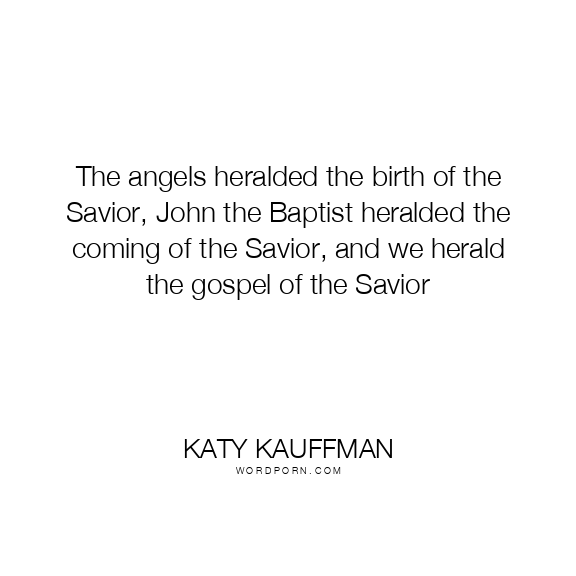 The angels heralded the birth of the Savior, John the Baptist heralded the coming of the Savior, and we herald the gospel of the Savior