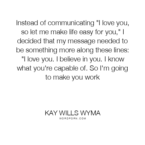 Instead of communicating "I love you, so let me make life easy for you," I decided that my message needed to be something more along these lines: "I love you. I believe in you. I know what you're capable of. So I'm going to make you work
