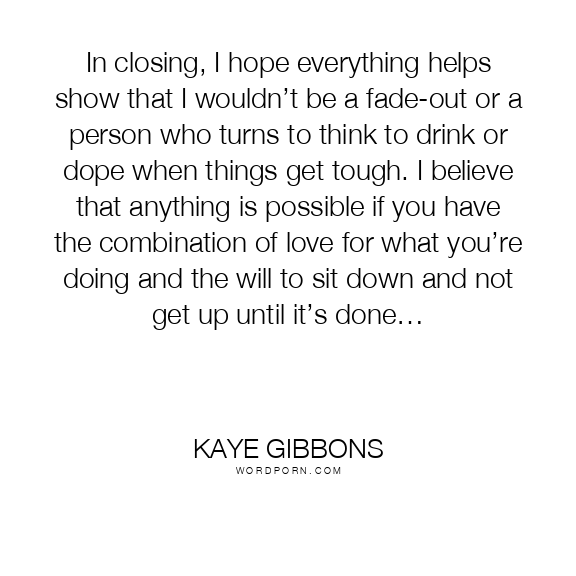 In closing, I hope everything helps show that I wouldn’t be a fade-out or a person who turns to think to drink or dope when things get tough. I believe that anything is possible if you have the combination of love for what you’re doing and the will to sit down and not get up until it’s done…