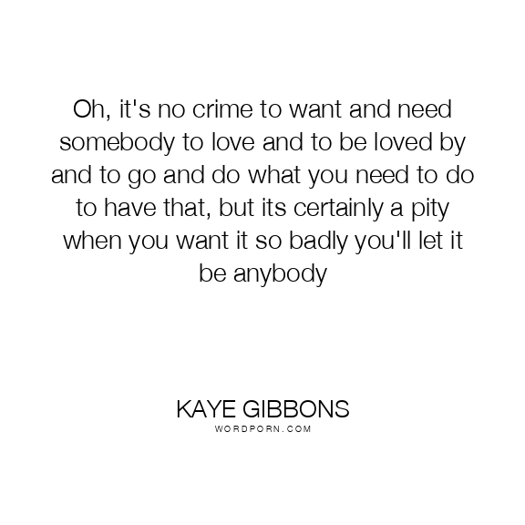 Oh, it's no crime to want and need somebody to love and to be loved by and to go and do what you need to do to have that, but its certainly a pity when you want it so badly you'll let it be anybody