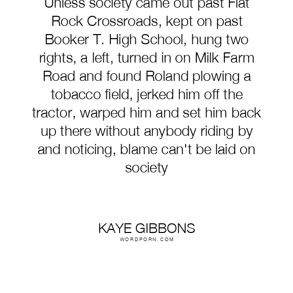 Unless society came out past Flat Rock Crossroads, kept on past Booker T. High School, hung two rights, a left, turned in on Milk Farm Road and found Roland plowing a tobacco field, jerked him off the tractor, warped him and set him back up there without anybody riding by and noticing, blame can't be laid on society