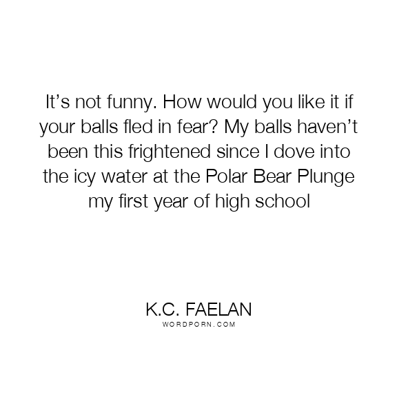 It’s not funny. How would you like it if your balls fled in fear? My balls haven’t been this frightened since I dove into the icy water at the Polar Bear Plunge my first year of high school
