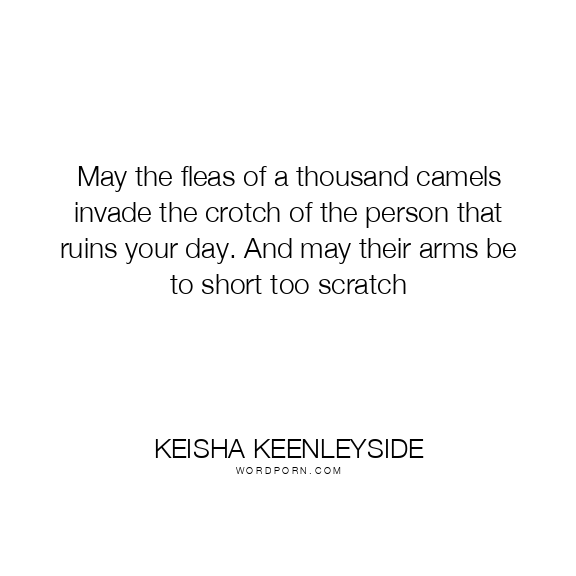 May the fleas of a thousand camels invade the crotch of the person that ruins your day. And may their arms be to short too scratch