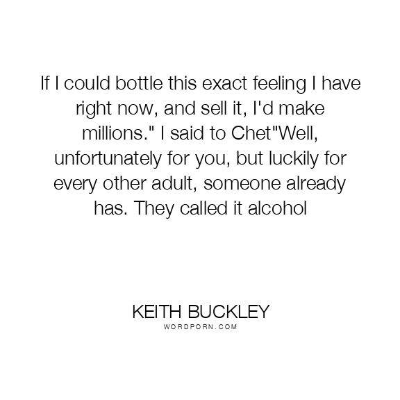 If I could bottle this exact feeling I have right now, and sell it, I'd make millions." I said to Chet"Well, unfortunately for you, but luckily for every other adult, someone already has. They called it alcohol