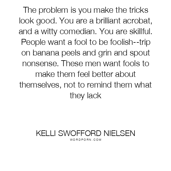 The problem is you make the tricks look good. You are a brilliant acrobat, and a witty comedian. You are skillful. People want a fool to be foolish--trip on banana peels and grin and spout nonsense. These men want fools to make them feel better about themselves, not to remind them what they lack