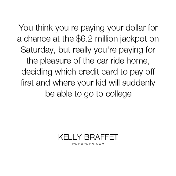 You think you're paying your dollar for a chance at the $6.2 million jackpot on Saturday, but really you're paying for the pleasure of the car ride home, deciding which credit card to pay off first and where your kid will suddenly be able to go to college