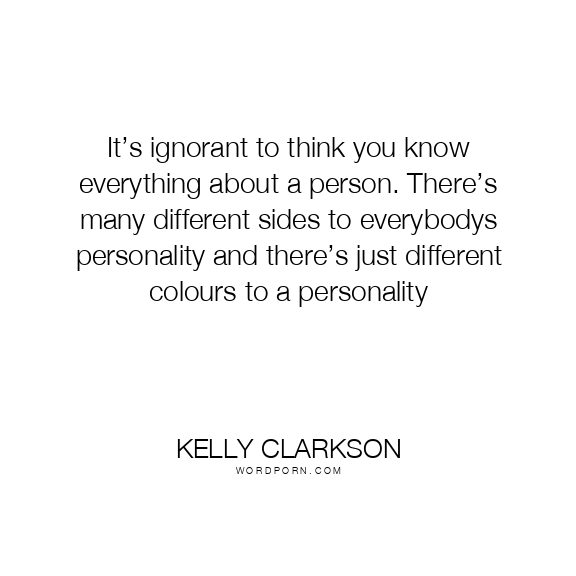 It’s ignorant to think you know everything about a person. There’s many different sides to everybodys personality and there’s just different colours to a personality