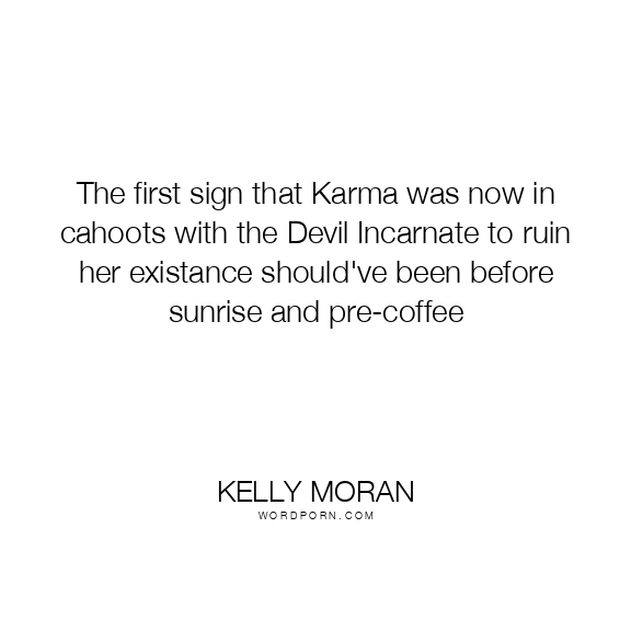 The first sign that Karma was now in cahoots with the Devil Incarnate to ruin her existance should've been before sunrise and pre-coffee