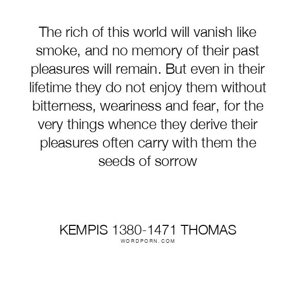 The rich of this world will vanish like smoke, and no memory of their past pleasures will remain. But even in their lifetime they do not enjoy them without bitterness, weariness and fear, for the very things whence they derive their pleasures often carry with them the seeds of sorrow