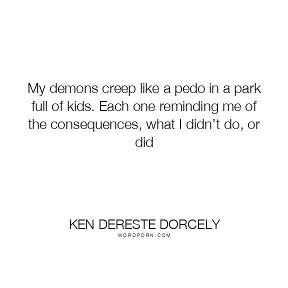 Copy Image My demons creep like a pedo in a park full of kids. Each one reminding me of the consequences, what I didn’t do, or did Moms Typewriter A A SAVE THIS IMAGE