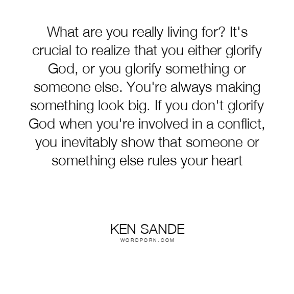 What are you really living for? It's crucial to realize that you either glorify God, or you glorify something or someone else. You're always making something look big. If you don't glorify God when you're involved in a conflict, you inevitably show that someone or something else rules your heart