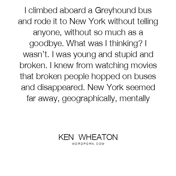 I climbed aboard a Greyhound bus and rode it to New York without telling anyone, without so much as a goodbye. What was I thinking? I wasn’t. I was young and stupid and broken. I knew from watching movies that broken people hopped on buses and disappeared. New York seemed far away, geographically, mentally