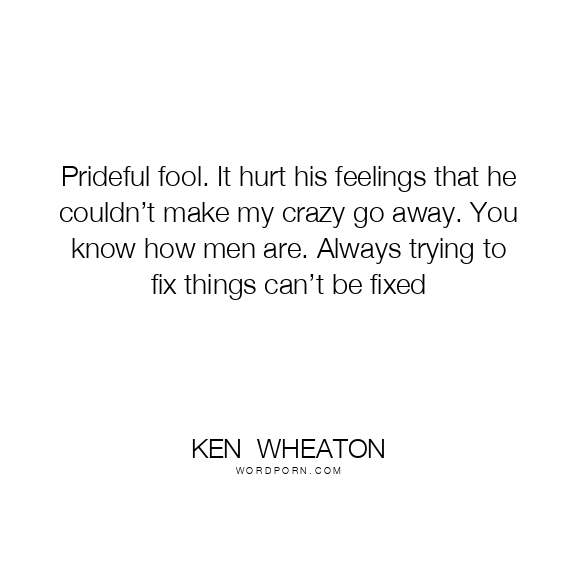 Prideful fool. It hurt his feelings that he couldn’t make my crazy go away. You know how men are. Always trying to fix things can’t be fixed