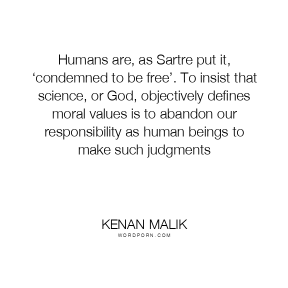 Humans are, as Sartre put it, ‘condemned to be free’. To insist that science, or God, objectively defines moral values is to abandon our responsibility as human beings to make such judgments