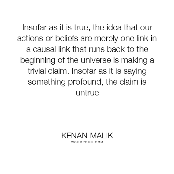 Insofar as it is true, the idea that our actions or beliefs are merely one link in a causal link that runs back to the beginning of the universe is making a trivial claim. Insofar as it is saying something profound, the claim is untrue