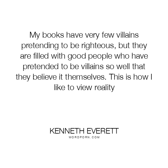 My books have very few villains pretending to be righteous, but they are filled with good people who have pretended to be villains so well that they believe it themselves. This is how I like to view reality