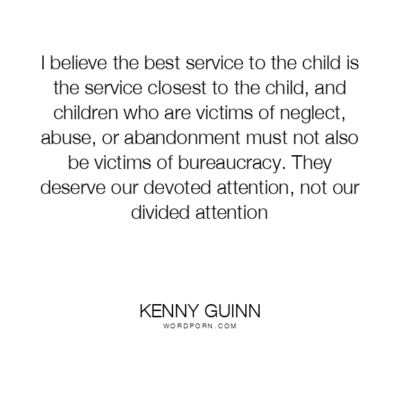 I believe the best service to the child is the service closest to the child, and children who are victims of neglect, abuse, or abandonment must not also be victims of bureaucracy. They deserve our devoted attention, not our divided attention