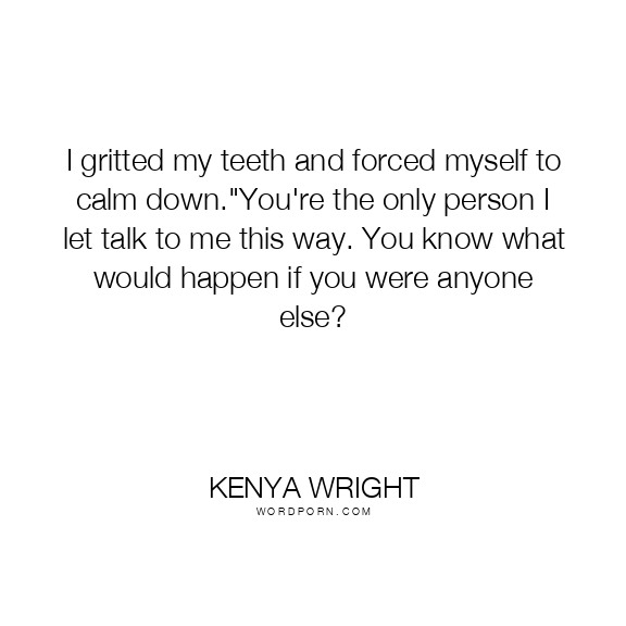 I gritted my teeth and forced myself to calm down."You're the only person I let talk to me this way. You know what would happen if you were anyone else?
