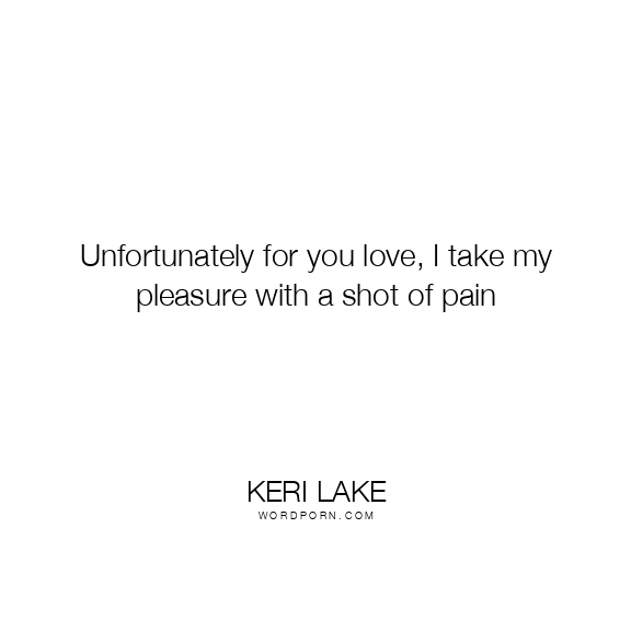 Unfortunately for you love, I take my pleasure with a shot of pain