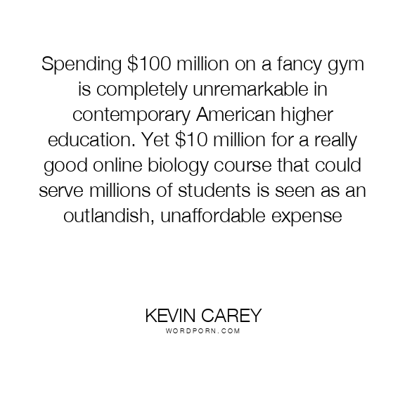 Spending $100 million on a fancy gym is completely unremarkable in contemporary American higher education. Yet $10 million for a really good online biology course that could serve millions of students is seen as an outlandish, unaffordable expense