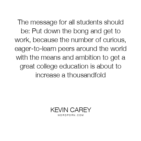 The message for all students should be: Put down the bong and get to work, because the number of curious, eager-to-learn peers around the world with the means and ambition to get a great college education is about to increase a thousandfold