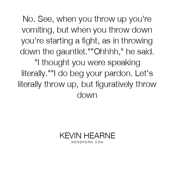 No. See, when you throw up you're vomiting, but when you throw down you're starting a fight, as in throwing down the gauntlet.""Ohhhh," he said. "I thought you were speaking literally.""I do beg your pardon. Let's literally throw up, but figuratively throw down