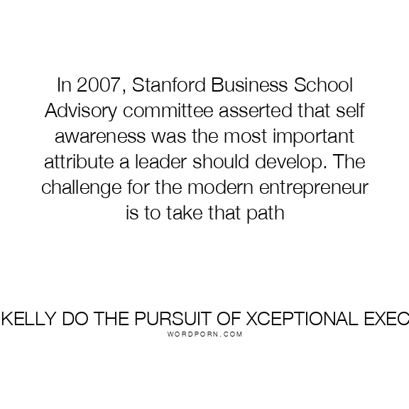 In 2007, Stanford Business School Advisory committee asserted that self awareness was the most important attribute a leader should develop. The challenge for the modern entrepreneur is to take that path