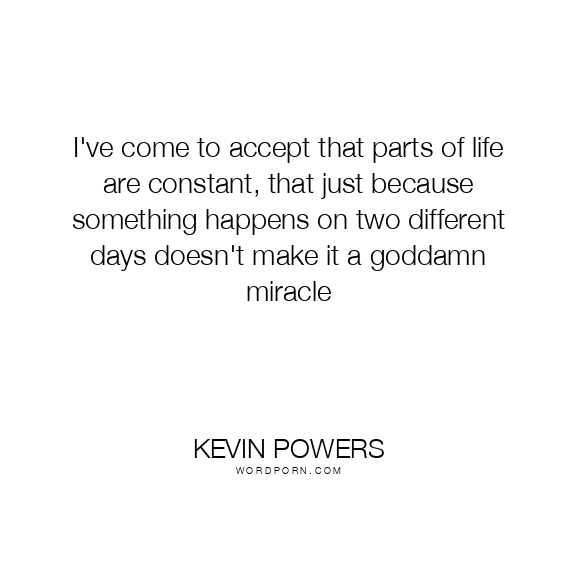 I've come to accept that parts of life are constant, that just because something happens on two different days doesn't make it a goddamn miracle