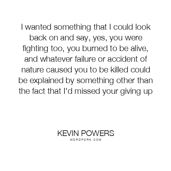 I wanted something that I could look back on and say, yes, you were fighting too, you burned to be alive, and whatever failure or accident of nature caused you to be killed could be explained by something other than the fact that I'd missed your giving up