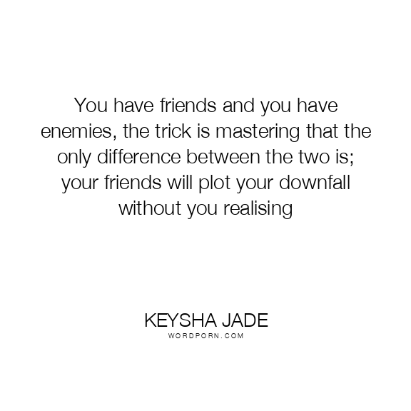 You have friends and you have enemies, the trick is mastering that the only difference between the two is; your friends will plot your downfall without you realising