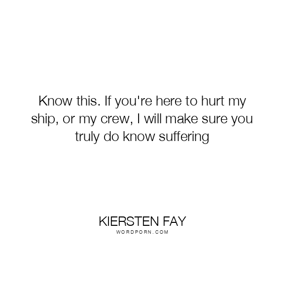 Know this. If you're here to hurt my ship, or my crew, I will make sure you truly do know suffering