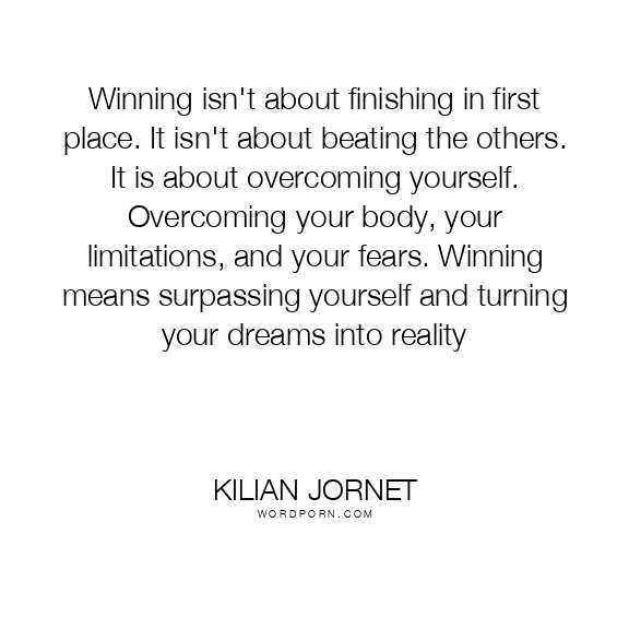 Winning isn't about finishing in first place. It isn't about beating the others. It is about overcoming yourself. Overcoming your body, your limitations, and your fears. Winning means surpassing yourself and turning your dreams into reality