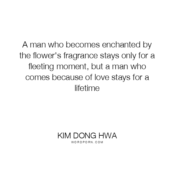 A man who becomes enchanted by the flower's fragrance stays only for a fleeting moment, but a man who comes because of love stays for a lifetime